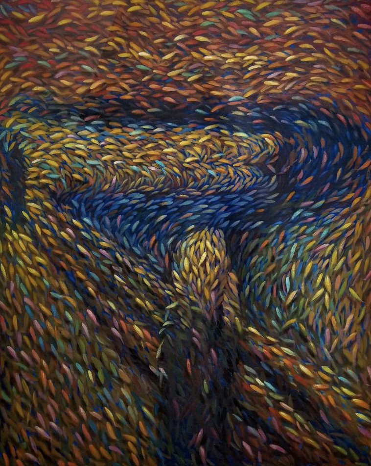Подводные пейзажи демонстрируют косяки рыб, которые синхронно перемещаются, чтобы защитить себя от хищников, что побуждает задуматься об интуиции, как индивидуальной, так и коллективной. Также художник по-новому интерпретирует известные произведения искусства, что символизирует контраст между естественной и художественной интуицией, органическим и культурным, хаотичным и системным.